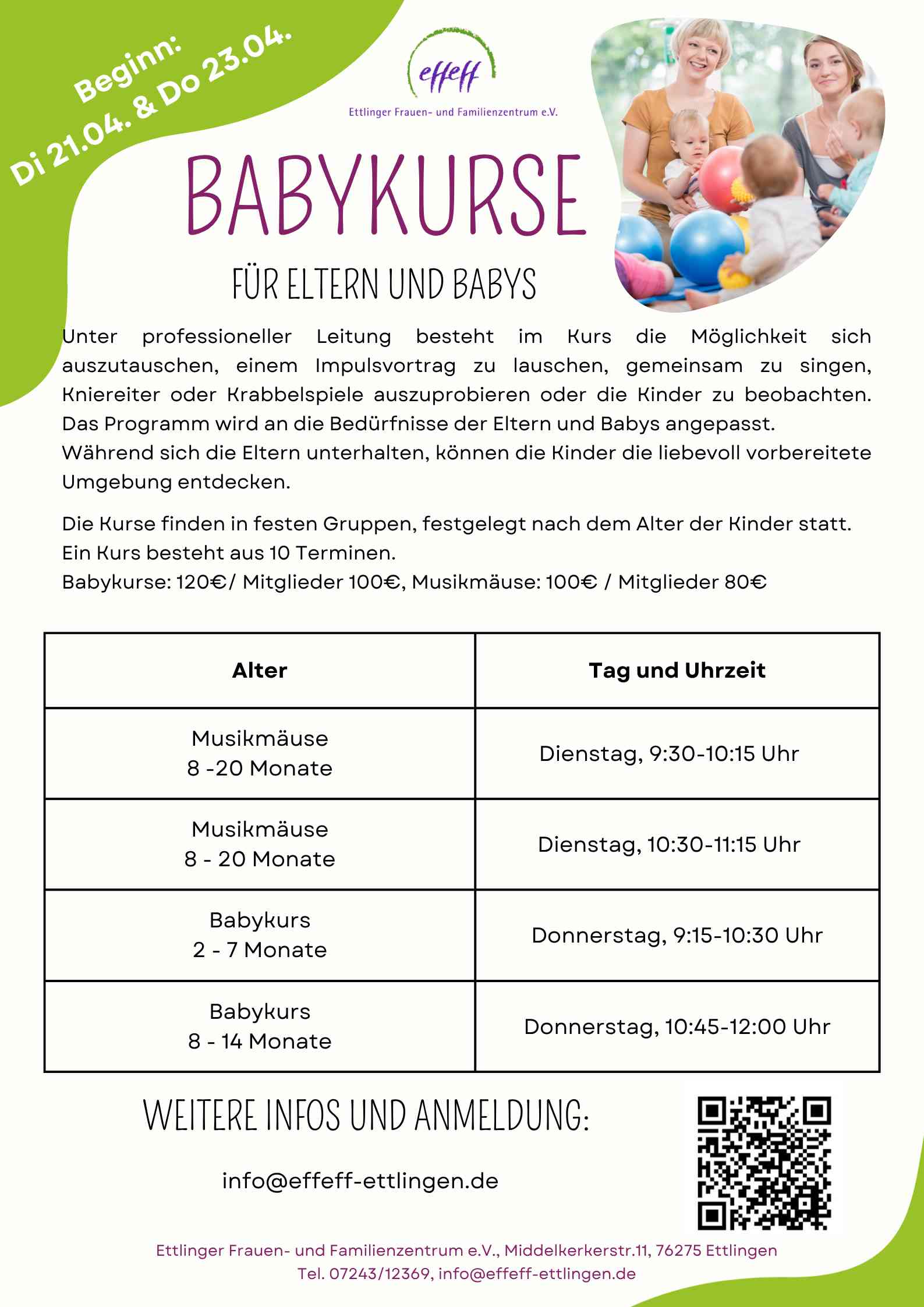 Anmeldung per Mail an baby@effeff-ettlingen.de.